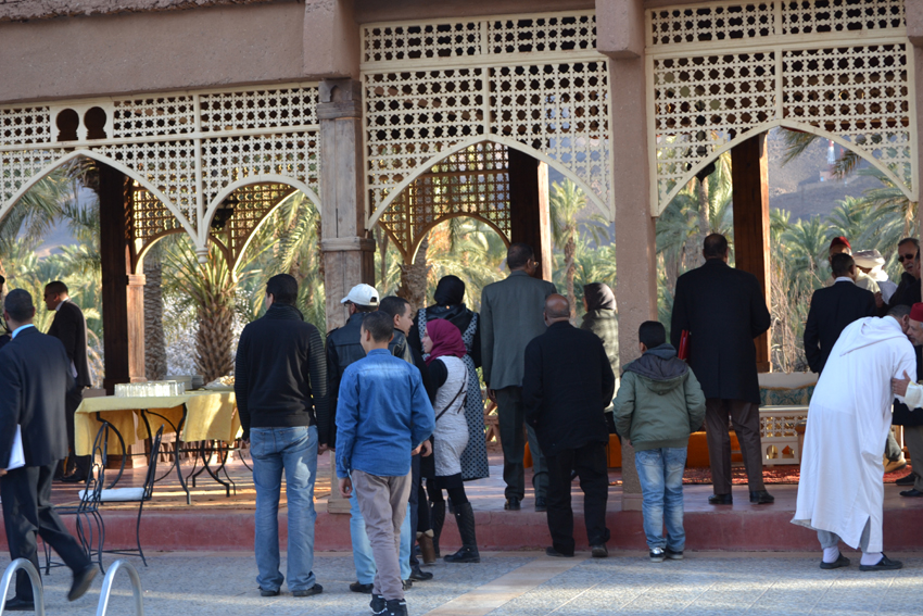 لتليها طلت بهية على جنبات القصبة بين النخيل و الخضرة و زرقة المياه وسط باحة الاستراحة حيث تم تذوق كؤوس شاي بنكهة صحراوية قدمتها إدارة القصبة عربونا على الوفاء و جميل الضيافة و استمتع بها المشاركون و عدلت أمزجة شردت بين طيات الزمان و دروب الذكريات.