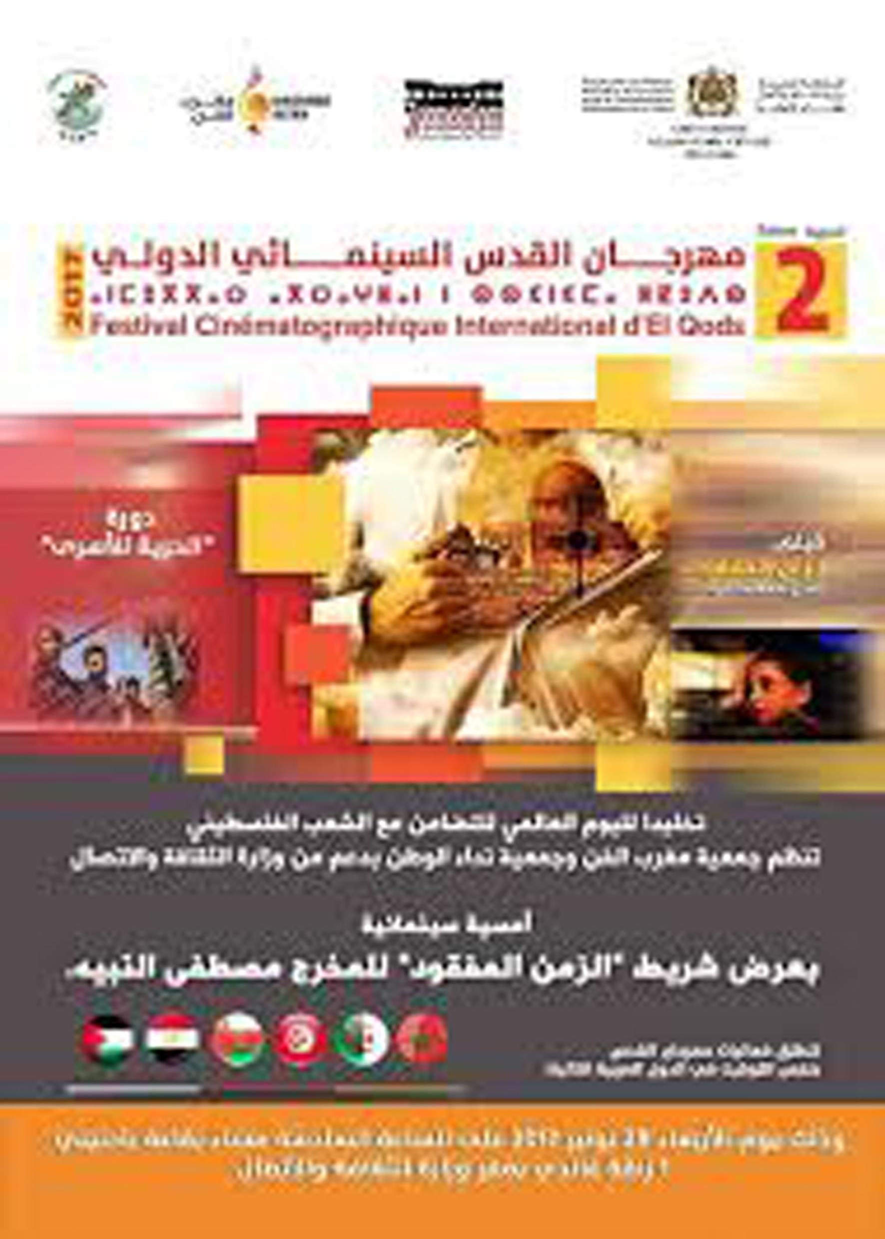 تخليدا لليوم العالمي للتضامن مع الشعب الفلسطيني الشقيق ، الذي يوافق ذكرى قرار التقسيم الصادر عن الجمعية العامة للأمم المتحدة في 29 نوفمبر 1947..نظمت جمعية نداء الوطن وجمعية مغرب الفن الدورة الثانية من مهرجان القدس السينمائي الدولي، تحت عنوان دورة “الحرية للأسرى” بدعم من وزارة الثقافة ..