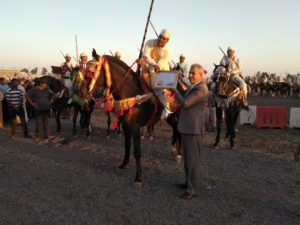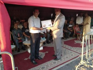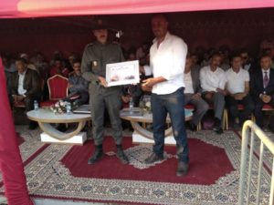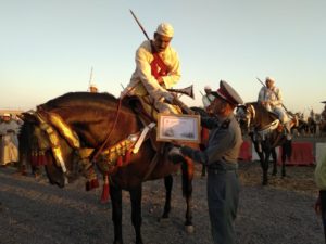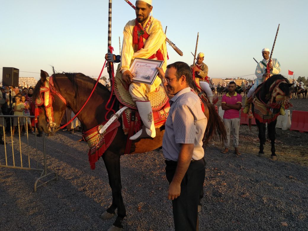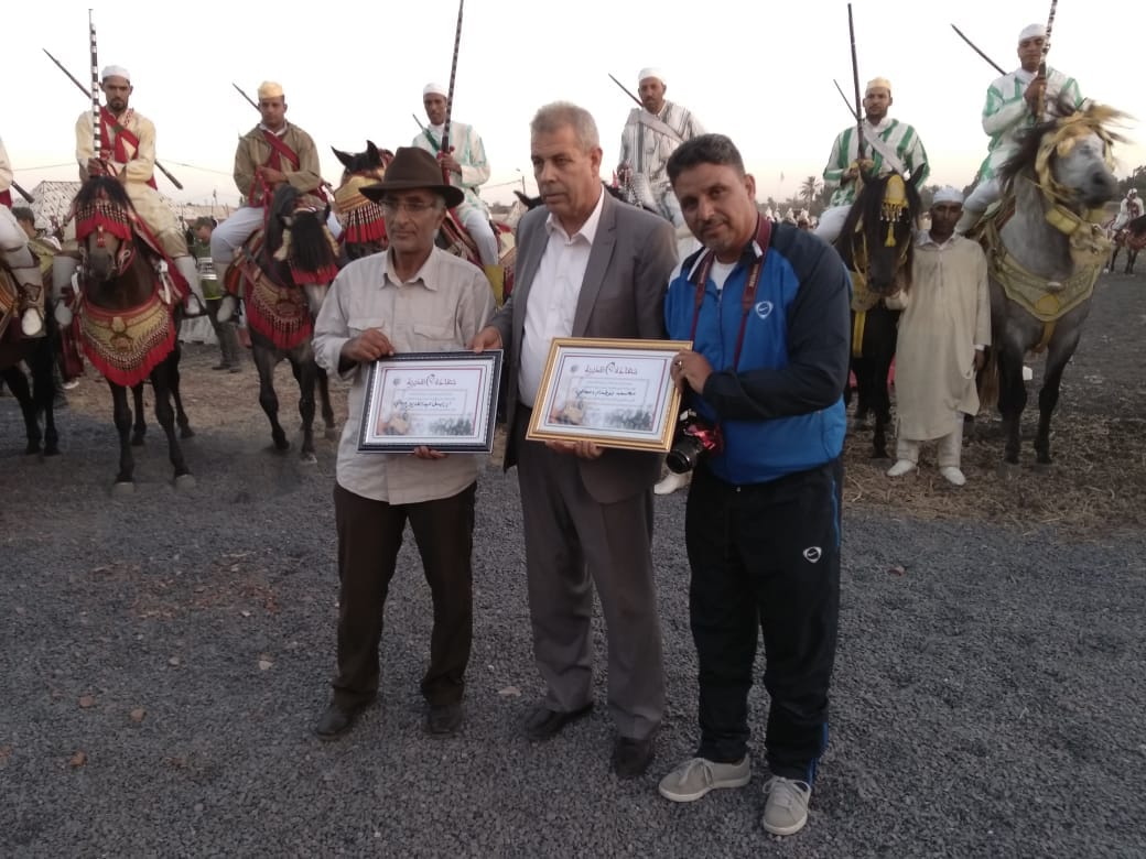 كما نوه بالمجهود الذي قام به أعضاء مجلس جماعة سيدي حجاج داعيا الله عز وجل ان ينصر امير المؤمنين ويحفظه في ولي العهد وسائر أفراد اسرته الكريمة. كما اضاف السيد هشام الفالح رئيس اللجنة الثقافية والفنية والرياضية في كلمة مقتضبة بمدى اعجابه بالظروف التي مر فيها الموسم هذه السنة وضرب للزوار موعدا السنة المقبلة واعدا اياهم بأن الآتي سيكون أحسن بحول الله وقوته وفي الأخير تسلم جميع مقدمي “الصربات” شواهد تقديرية عرفانا بما قدموه من فرجة لأبناء الاقليم وتمت الطلقة الجماعية لجميع الفرسان المشاركين وكانت بمتابة نقطة اسدال الستار على فعاليات هذا الموسم