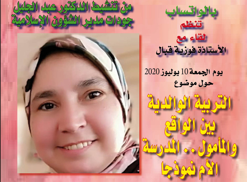 وفي هذا الصدد القت الاستاذة فوزية قبال مداخلة حول موضوع تحت عنوان.. التربية الوالرية بين الواقع والمأمول..المدرسة الأم نمودجا بمجموعة الواتساب والتي يبلع عدد المشاركين بها أكثر من 100 شخصية من مختلف بقاع العالم