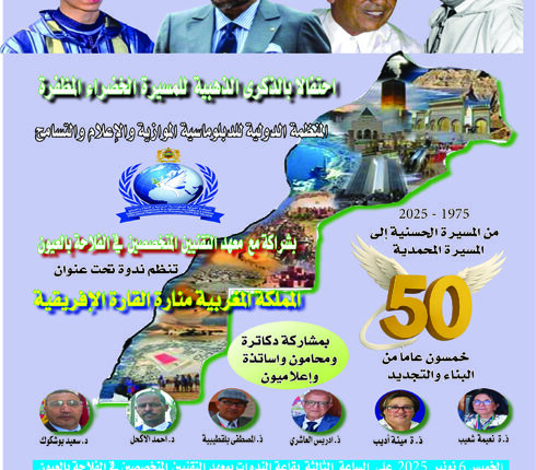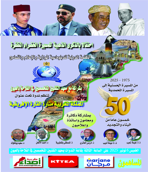 المنظمة الدولية للدبلوماسية الموازية والإعلام والتسامح تحتفل بالذكرى الذهبية للمسيرة الخضراء بشراكة مع معهد التقنيين المتخصصين في الفلاحة بالعيون